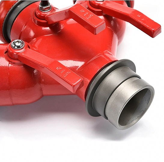 三通分流支管是消防供水系统中必不可少的组件,其设计旨在将单根主供水管路分成三条支管,非常适合需要同时部署多条消防水带的场景(例如大面积火灾或多点灭火)。三通分流支管安装在主消防水带管路上,具有一个进水口和三个出水口,每个出水口均配有专用阀门装置。这种阀门设计允许消防员随时打开或关闭各个支管:他们可以同时使用三个支管进行大面积灭火,也可以关闭未使用的支管,将水压集中用于重点区域。此外,阀门控制的出水口方便在不中断整体供水的情况下轻松更换或添加支管,从而在应急操作中节省宝贵时间。通过减少对额外水带和人力的需求,该装置有效缩短了放水准备时间,并提高了消防队伍的整体响应能力。