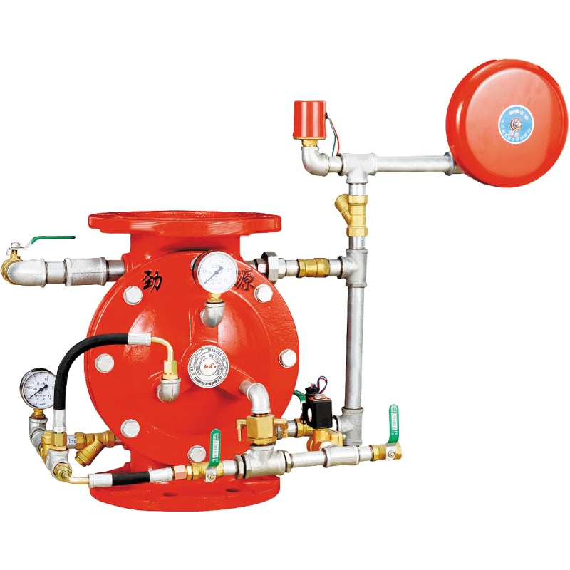 雨淋报警阀采用隔膜止回阀的原理,当隔膜两侧管道压力平衡时,隔膜处于关闭状态。当管网中供水系统压力大于水喷淋系统管道压力时,隔膜能自动开启。它是一种单向止回阀,可与其他组件组合组成各种雨淋报警灭火系统,适用于医院、商场等场所的自动水喷淋灭火系统。