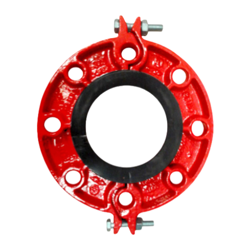 沟槽式分体法兰是一种用于实现沟槽式管道与法兰端设备之间转换连接的管件。它就像一座“桥梁”,能够快速、无焊接地将沟槽式管道连接到阀门、水泵或其他设备等传统法兰接口上。